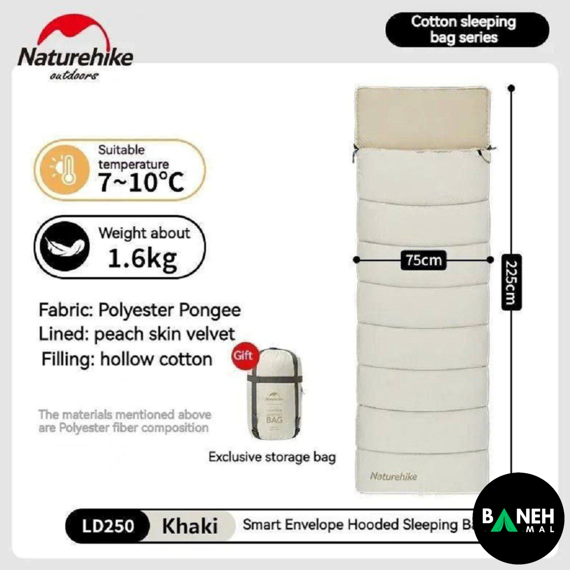 نوع: کیسه خواب الیاف مستطیلی (پاکتی)