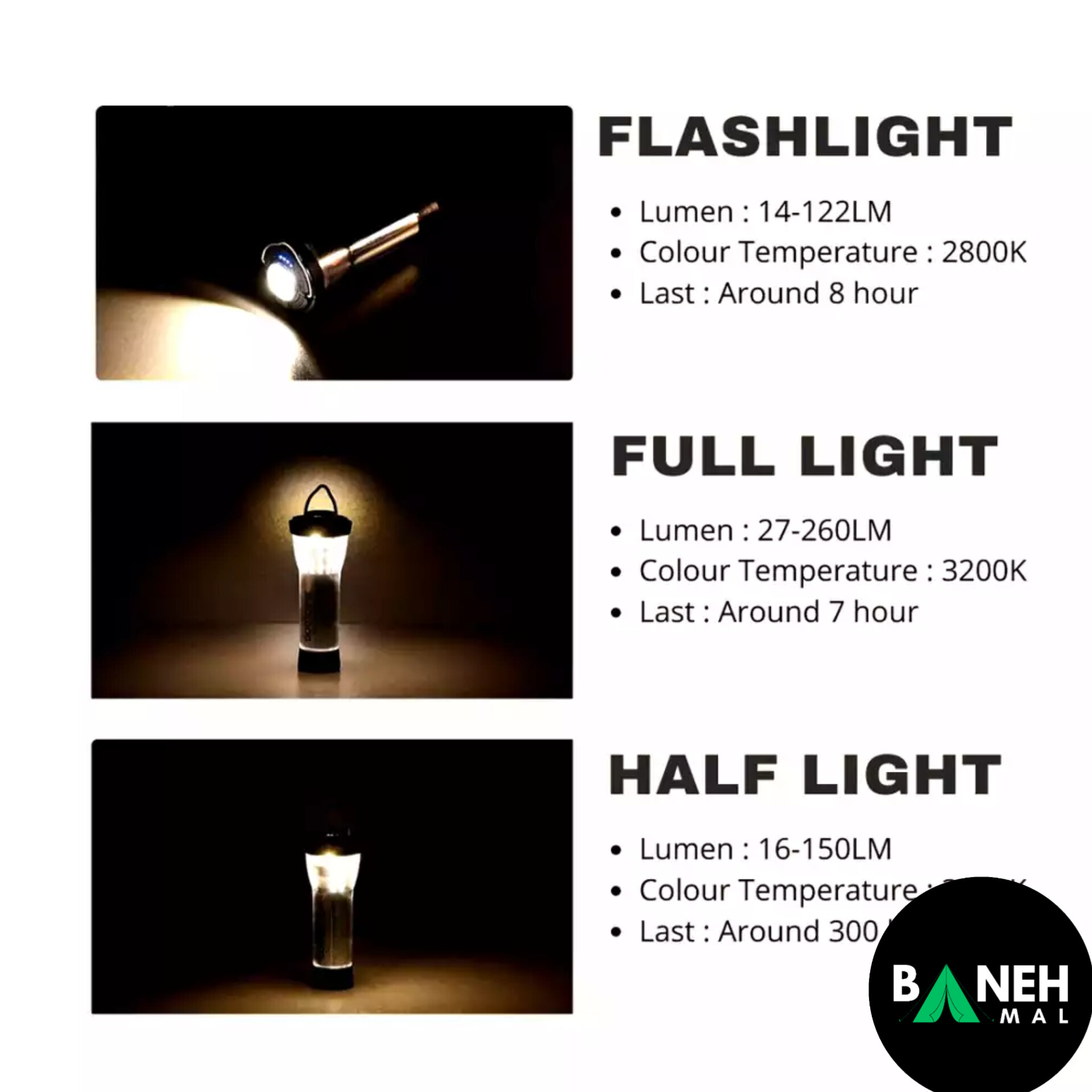 دمای رنگ 2800 تا 3200 کلوین، توان مصرفی 1.2 وات و پورت شارژ USB مستقیم