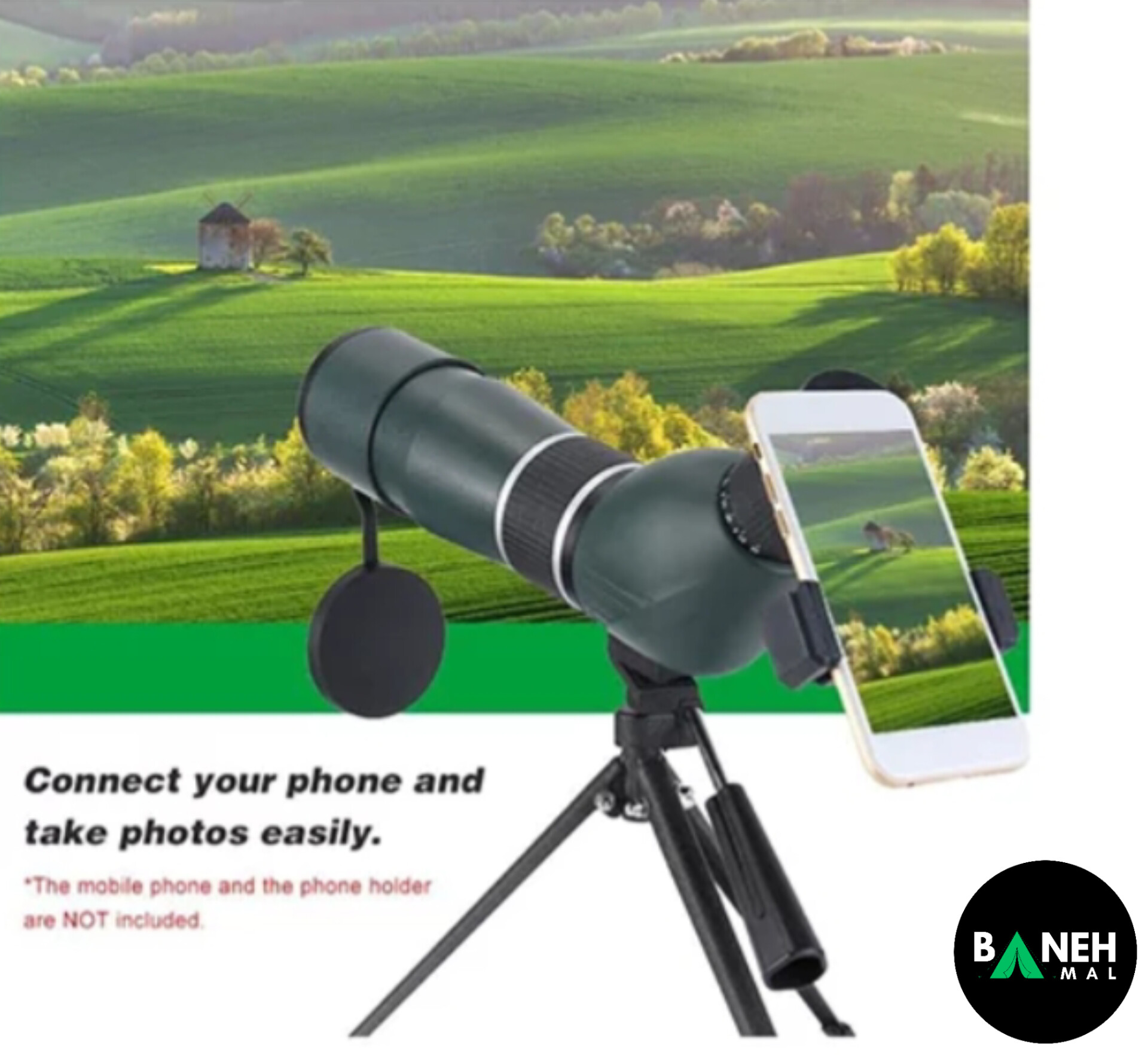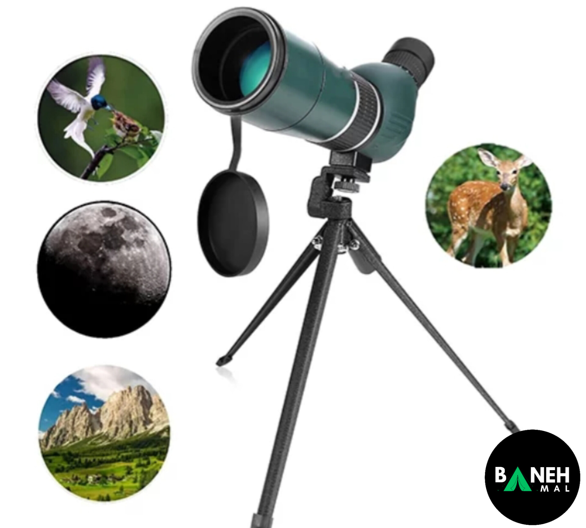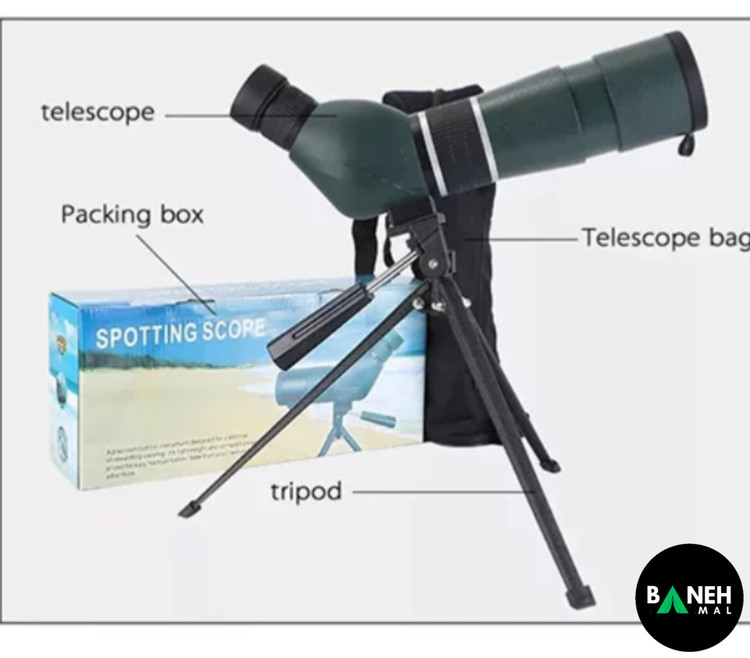 پایه سه پایه ، کیف حمل ، دستمال تمیز کننده ،پوشش عدسی ، دفترچه راهنما