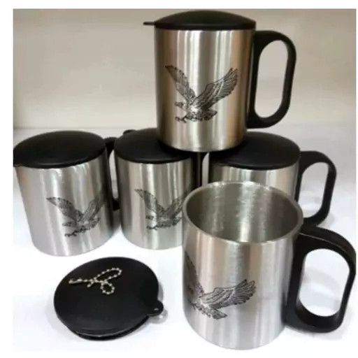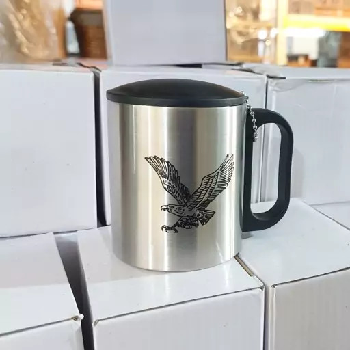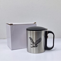 لیوان استیلی دوجداره درب دار طرح عقاب