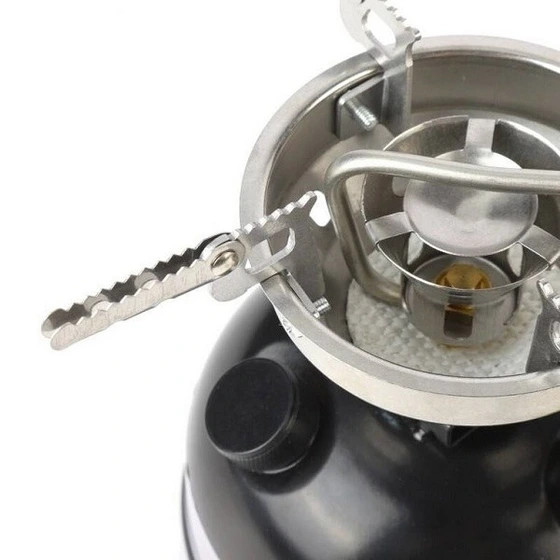 مخزن سوخت نیم لیتری متصل به اجاق ، اهرم پمپاژ سوخت ،حرارت تا چهار ساعت و دارای اهرم تنظیم شعله
