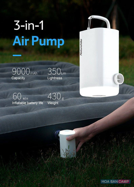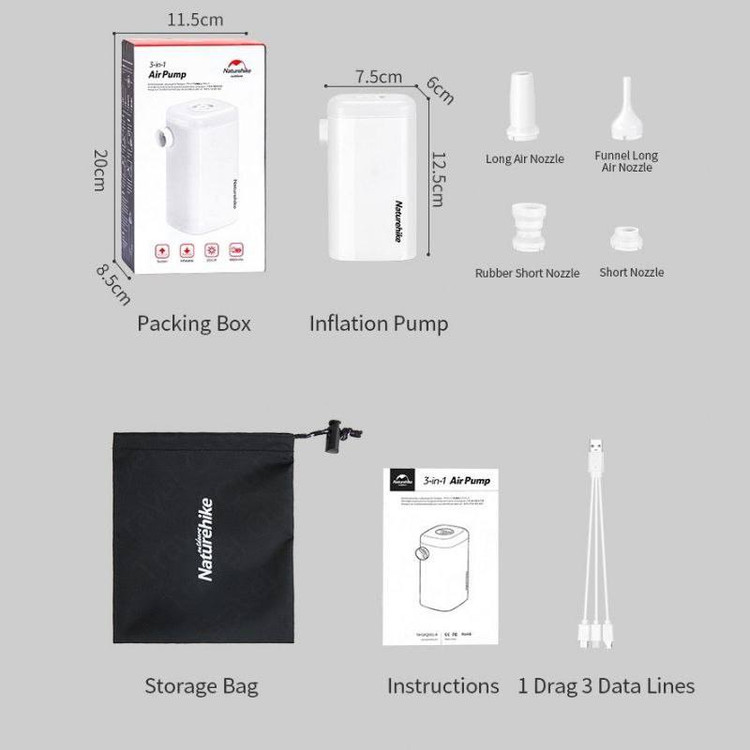 پمپ باد شارژی **Naturehike NH18Q001-A** از قدرت بالایی برای باد کردن استفاده میکند و در عین حال میتواند باد را از تجهیزاتی مانند **تشک بادی، صندلی بادی، تیوپ، استخر بادی** و سایر وسایل مشابه تخلیه کند. این قابلیت به ویژه برای کمپینگ و سفرهای آبی بسیار مفید است، چرا که به راحتی میتوان تجهیزات را به سرعت باد کرد یا تخلیه کرد.