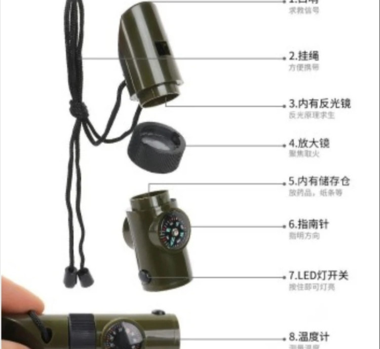 سوت: سوت این محصول برای جلب توجه در شرایط اضطراری و نجات افراد طراحی شده است. صدای بلند و قابل شنیدن آن در فواصل دور میتواند به شما کمک کند تا در صورت گم شدن یا در معرض خطر بودن، توجه دیگران را جلب کنید.