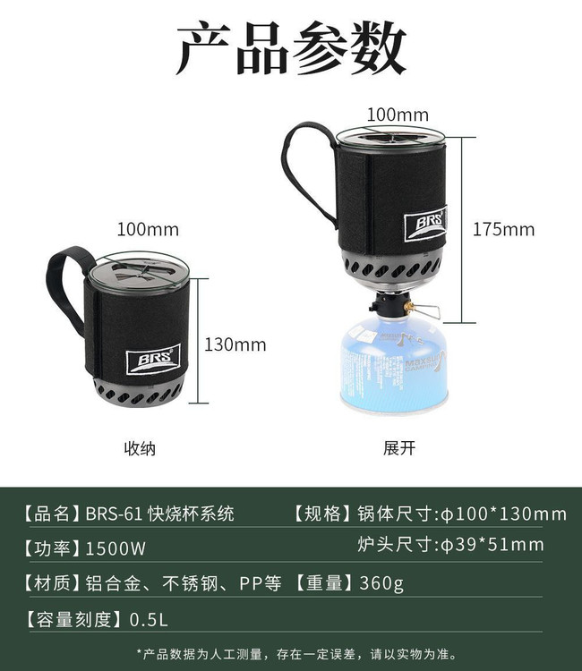 جت بویل BRS-61 با استفاده از آلیاژ آلومینیوم و فولاد ضد زنگ ساخته شده است که مقاومت بالایی در برابر شرایط سخت طبیعت دارد. این مواد به دستگاه کمک میکنند تا عمر طولانیتری داشته باشد و در برابر خوردگی و آسیبهای ناشی از استفاده مداوم در طبیعت، مقاوم باشد. همچنین قابلمه این دستگاه با قطر 100 میلیمتر و ارتفاع 130 میلیمتر، ظرفیت 500 میلیلیتر را ارائه میدهد که مناسب برای پخت غذا یا جوشاندن آب برای 1 تا 2 نفر است.