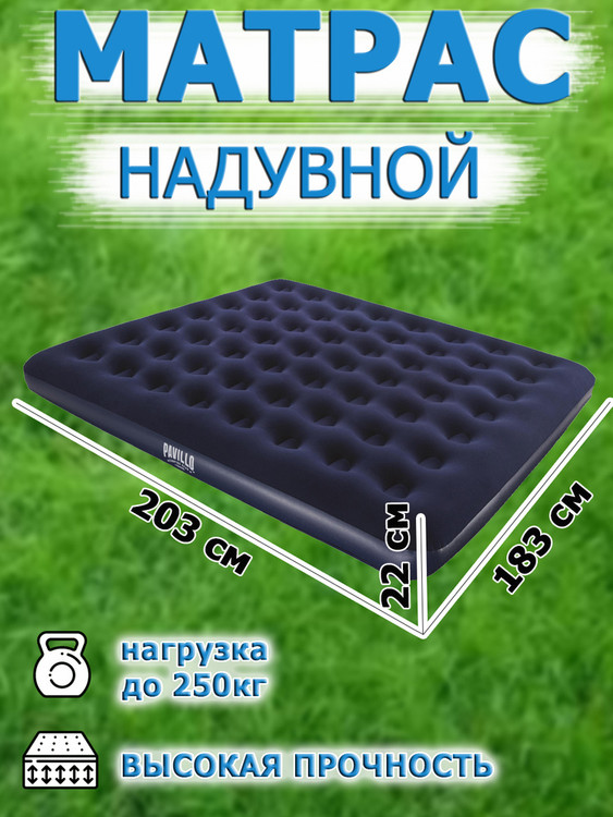 - تشک بادی دو نفره دارای ابعاد ۱۸۳×۲۰۳ سانتیمتر میباشد که به راحتی فضای کافی برای دو نفر را فراهم میکند. این تشک نیز با ارتفاع ۲۲ سانتیمتر طراحی شده است تا خواب راحت و بدون دردسری را برای کاربران خود به ارمغان آورد.