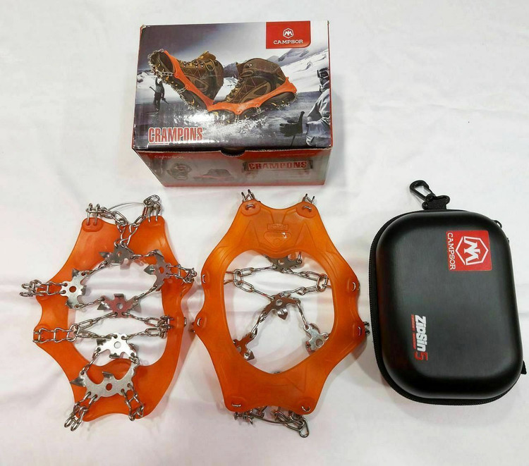 کرامپون (زنجیر) کفش کوهنوردی ۱۸ شاخه کمپسور، یک ابزار ضروری برای کوهنوردان و علاقهمندان به فعالیتهای زمستانی است که به خصوص در مسیرهای یخزده و برفی اهمیت زیادی دارد. این محصول از شرکت معتبر Campsor عرضه شده و با طراحی خاص خود به شما این امکان را میدهد که در شرایط سخت و لغزنده به راحتی و بدون خطر به مسیر خود ادامه دهید.