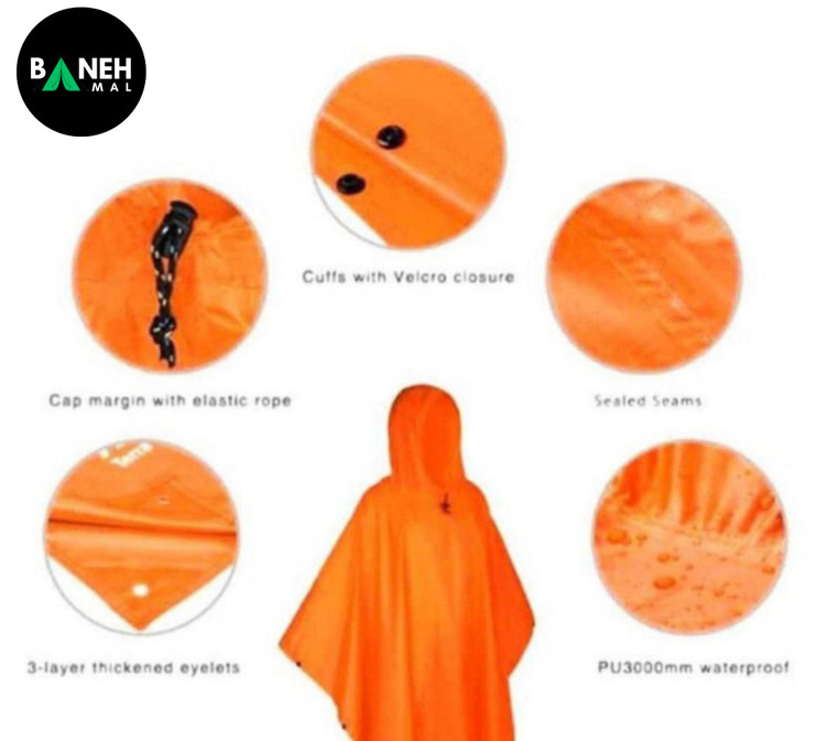 - پناهگاه یا سایبان اضطراری: در شرایطی که نیاز به پناهگاه سریع و مؤثر دارید، این پانچو میتواند به عنوان یک سایبان یا پناهگاه اضطراری عمل کند و شما را از عوامل محیطی مثل بارش باران، باد یا آفتاب محافظت کند.