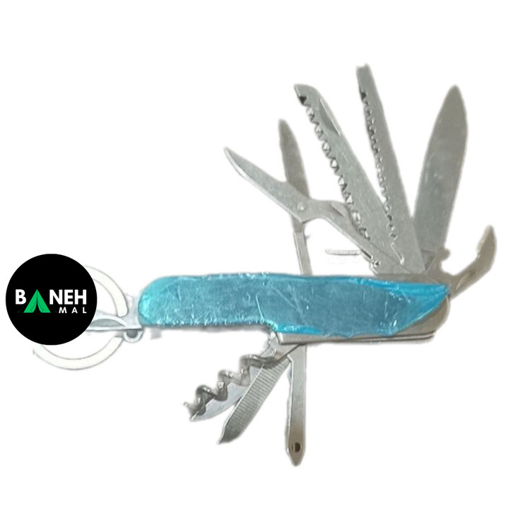 چاقو ، درب بازکن قوطی فلزی ،درب بازکن بطری ، قلاب جهت اویختن به کمربند و کوله ، پیچگوشتی چهارسو ، أره ، چوب پنبه باز کن ، پوستکن مخصوص پولک ماهی ، درفش ،قیچی و سوهان