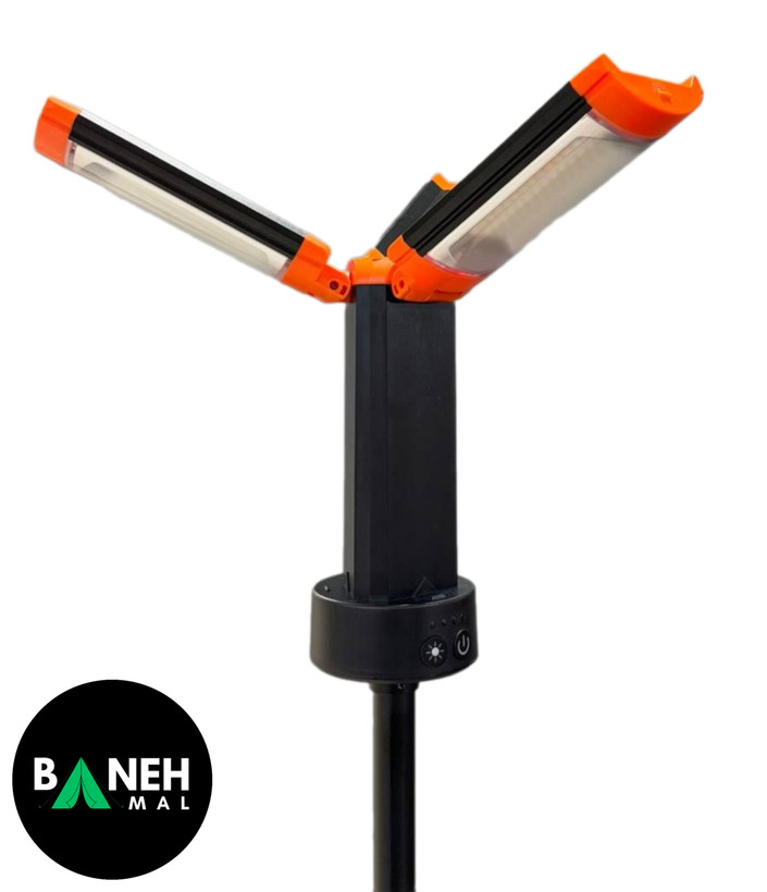چراغ ۳ پنل کمپی مجهز به سه پایه قابل تنظیم است که به شما این امکان را میدهد تا ارتفاع چراغ را به راحتی تنظیم کنید. این سه پایه به شما کمک میکند تا چراغ را در موقعیت مناسب قرار دهید و آن را در زاویههای مختلف تنظیم کنید تا نور دقیقی را در مکان دلخواه داشته باشید. این ویژگی برای استفاده در کمپینگ یا فعالیتهای بیرون از منزل که نیاز به تنظیم نور در محیطهای مختلف دارند، بسیار مفید است.