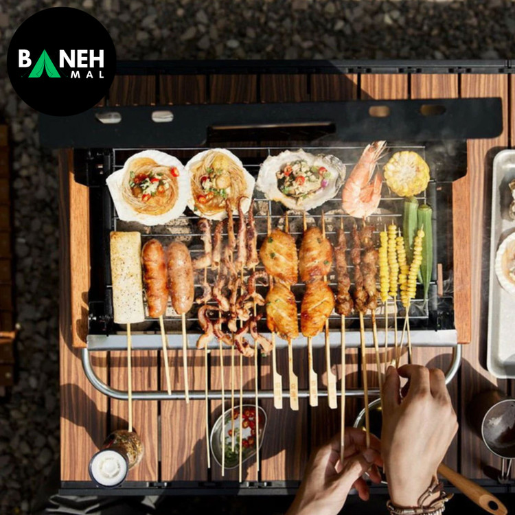 علاوه بر این، استفاده از چوب لاستیکی در برخی از قسمتهای این باربیکیو، علاوه بر زیبایی، به آن ظاهری شیک و مدرن میدهد و باعث میشود که محصول به راحتی در دست قرار گیرد و حمل آن راحتتر باشد. این طراحی مناسب برای استفاده در فضای باز باعث میشود که در طول مدت استفاده، هیچگونه مشکلی برای تمیز کردن یا استفاده از آن به وجود نیاید.