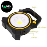 پاوربانک داخلی: این مدل از چراغ قوه دارای قابلیت پاوربانک است که به شما این امکان را میدهد که از آن به عنوان یک منبع تغذیه برای شارژ لوازم الکترونیکی خود استفاده کنید. با داشتن یک پورت USB خروجی، شما میتوانید موبایل، تبلت یا سایر دستگاههای USB را شارژ کنید. این ویژگی بهویژه در شرایطی که به برق شهری دسترسی ندارید، بسیار مفید و ضروری است.