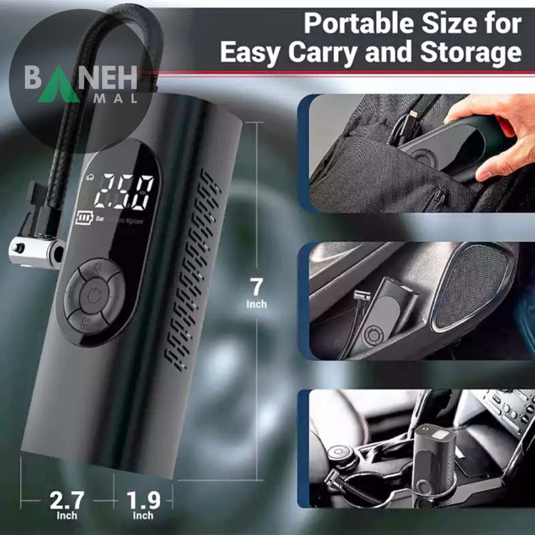 قابلیت تنظیم فشار باد: یکی از ویژگیهای برجسته این پمپ باد، قابلیت تنظیم فشار باد است. شما میتوانید فشار باد را مطابق با نیاز خود تنظیم کنید تا به راحتی لاستیکها یا سایر تجهیزات را باد کنید. این ویژگی به شما این امکان را میدهد که باد کردن لاستیکها را با دقت و بهطور موثر انجام دهید.