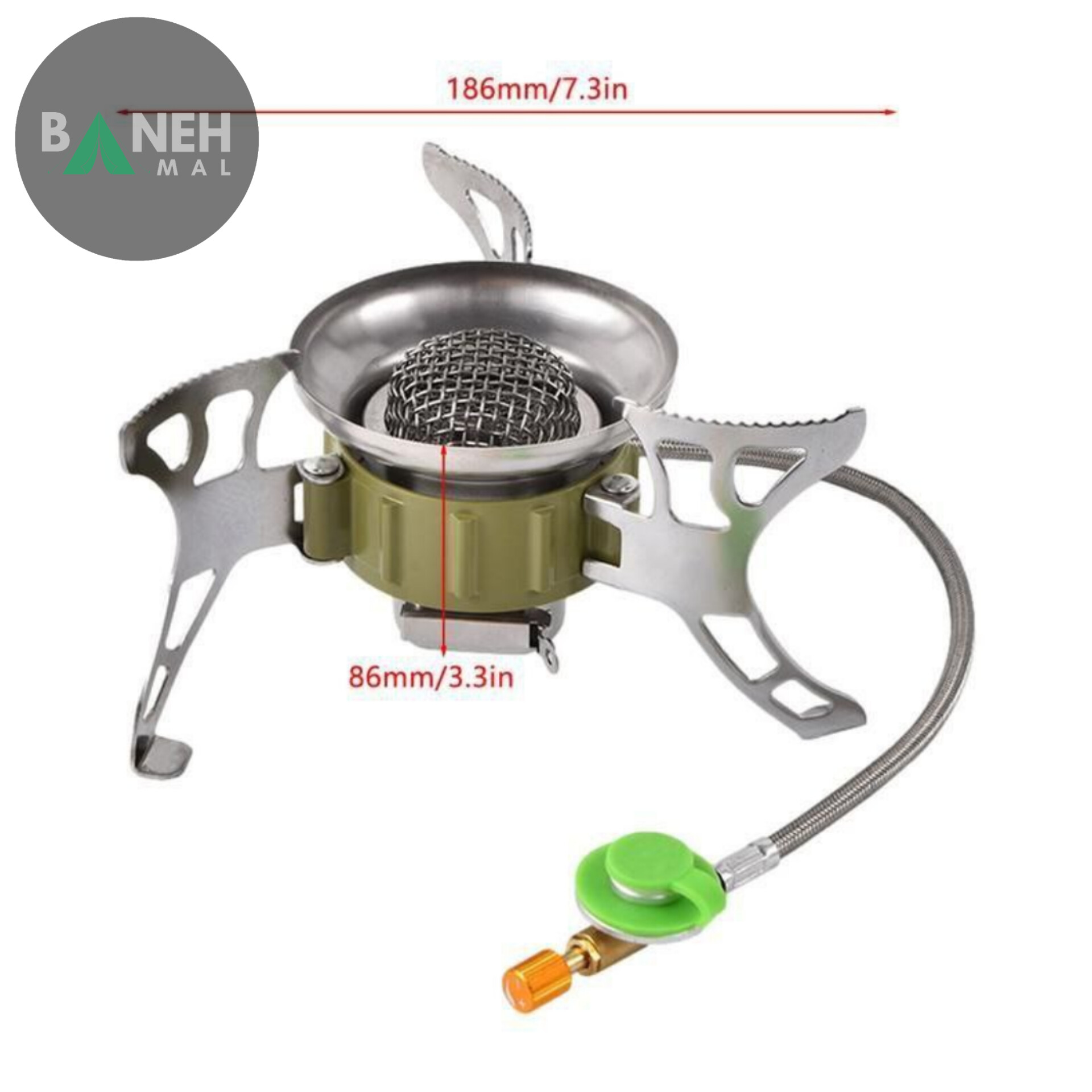 ابعاد باز شده: ۸.۶ * ۱۸.۶ سانتیمتر این سرشعله هنگامی که باز میشود، ابعاد مناسب و کاربردی برای استفاده بهطور مؤثر دارد. ابعاد ۸.۶ * ۱۸.۶ سانتیمتری آن بهگونهای طراحی شده که در فضای کوچک و فشرده نیز بهراحتی قابل استفاده باشد و در عین حال شعلهای قدرتمند تولید کند.