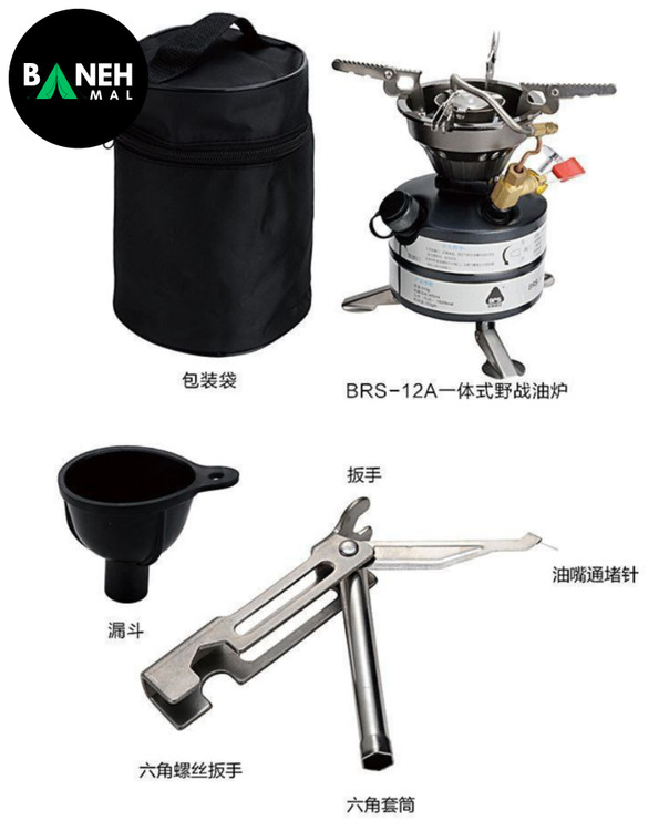 هر بسته از اجاق گاز ۴ سوخت BRS مدل BRS-12A شامل موارد زیر است:- اجاق سفری (1 عدد)