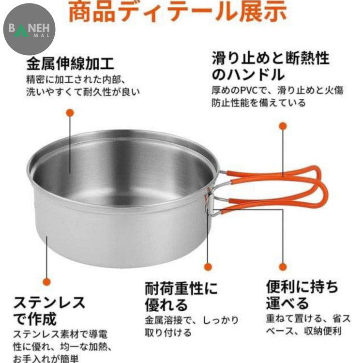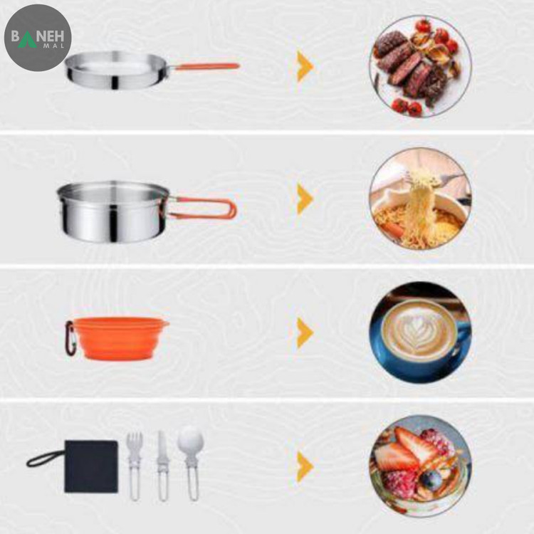 این ست ظروف با ترکیب مناسب از ابزارهای مختلف، برای خانوادههای کوچک یا گروههای 1 تا 3 نفره بسیار مناسب است. این ست به شما امکان میدهد که در محیطهای خارج از منزل مانند کمپینگ، کوهنوردی و پیکنیک به راحتی غذا بپزید و لذت ببرید.