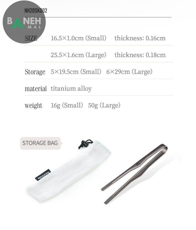 ابعاد مناسب و طراحی کاربردی: ابعاد این انبر تنها 1*16.5 سانتیمتر است که بهراحتی در کولهپشتی یا کیف کمپینگ شما جا میشود. این ابعاد مناسب باعث میشود که انبر فضای کمی را اشغال کرده و حمل آن بسیار آسان باشد. همچنین ضخامت آن تنها 0.16 سانتیمتر است که به آن انعطافپذیری و کارایی بیشتری میبخشد.