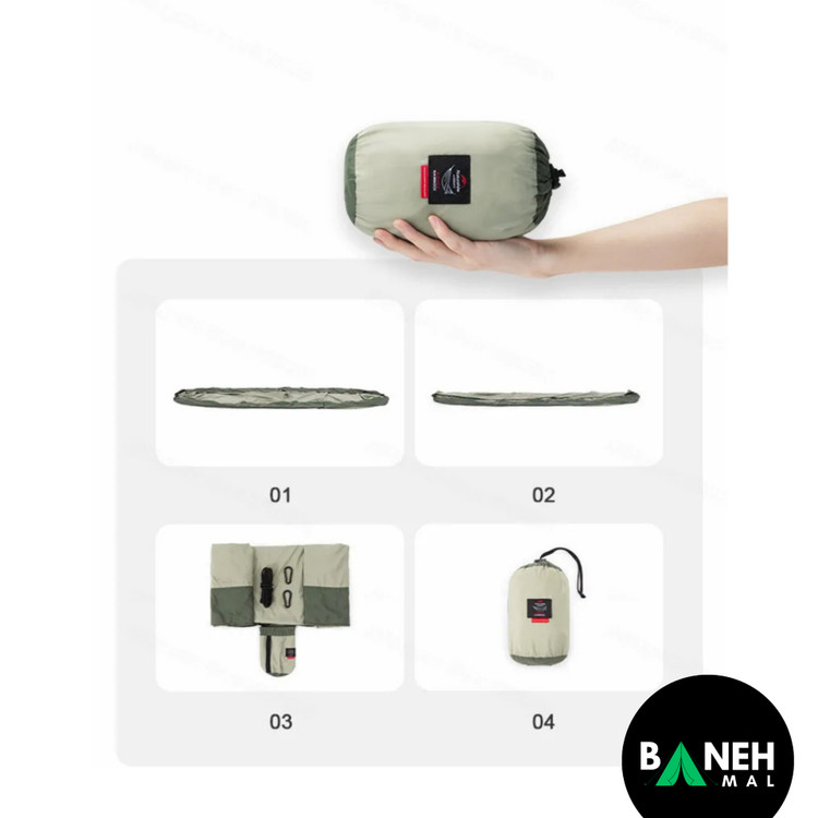 این ننو دارای ابعاد ۱۸۰ * ۲۹۰ سانتیمتر است که فضای کافی برای دو نفر را فراهم میکند. ابعاد بزرگ ننو باعث میشود که شما در داخل آن احساس راحتی داشته باشید و فضای کافی برای دراز کشیدن یا استراحت کردن وجود داشته باشد. این ننو میتواند به راحتی شما را از انواع شرایط محیطی مانند دمای بالا یا پایین، باد، یا حتی بارش باران محافظت کند.