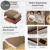 این کیسه خواب دارای بخش زیرین ویژهای است که به شما این امکان را میدهد که کیسه خواب را به انواع زیرانداز دو نفره فیکس کنید و از حرکت کیسه خواب جلوگیری کنید.