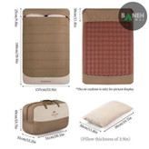این کیسه خواب شامل دو بالش نرم و راحت از فلیس و کتان به ابعاد 50 * 30 * 10 سانتیمتر است. این بالشها طراحی شدهاند تا به شما کمک کنند در طول شب خوابی راحت داشته باشید و سر شما در وضعیت مناسبی قرار گیرد.