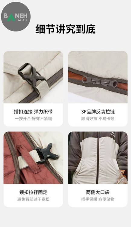 - شنل و کت: طراحی خاص این کیسه خواب به شما این امکان را میدهد که در صورت نیاز، آن را به صورت شنل بپوشید و از خود در برابر باد و سرما محافظت کنید. این ویژگی به خصوص در هنگام توقفهای کوتاه یا استراحت در فضای باز بسیار کاربردی است.
