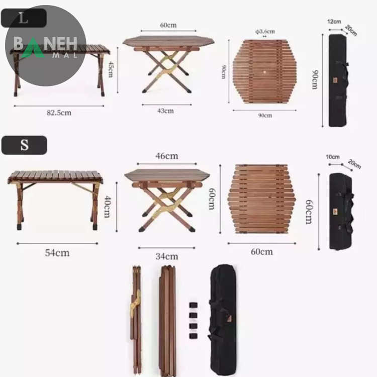 - ابعاد مناسب و جمعشونده: ابعاد بزرگ میز هنگام باز شدن و جمع شدن مناسب برای حمل و نقل آسان.