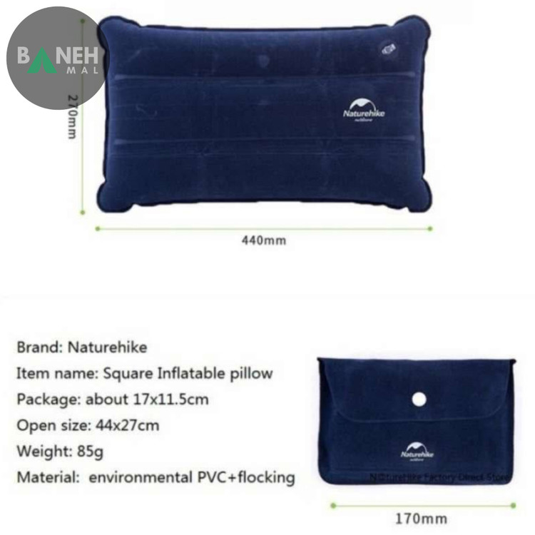 ابعاد مناسب: ابعاد باز شده بالش بادی نیچرهایک مدل NH18F018-Z برابر با 27×44 سانتیمتر است که برای استفاده از آن بهعنوان یک بالش خواب راحت و راحت در کمپ مناسب است. همچنین ابعاد جمعشده آن تنها 11.5×17 سانتیمتر است که بهراحتی در هر فضای کوچکی مانند کولهپشتی جا میشود.