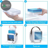 این کولر آبی به صورت رومیزی طراحی شده است، به این معنا که میتوانید آن را به راحتی روی میز کار، میز تحریر، کنار تخت خواب یا هر فضای دیگری قرار دهید. طراحی رومیزی آن باعث میشود که در محیطهای کوچک، به راحتی قابل استفاده باشد و فضای زیادی را اشغال نکند. شما میتوانید آن را به عنوان یک دستگاه خنککننده شخصی در فضاهایی مثل دفتر کار، اتاق خواب یا حتی در محیطهای باز مانند پیکنیکها و گشتوگذارهای تابستانی استفاده کنید.