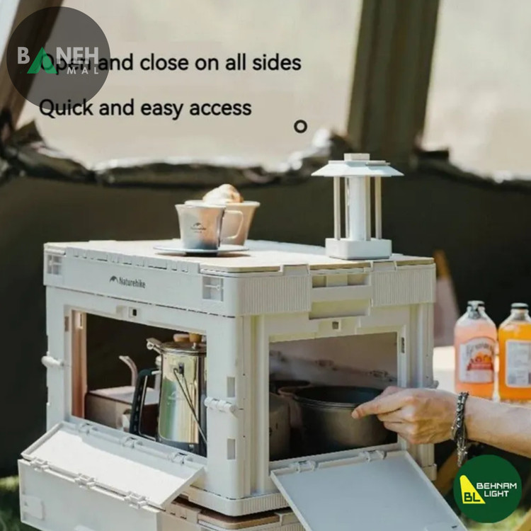 زمانی که جعبه باز میشود، ابعاد آن به 33.5×36.5×53 سانتیمتر میرسد که فضای مناسبی برای نگهداری انواع لوازم مختلف فراهم میآورد. این ابعاد به گونهای طراحی شدهاند که جعبه برای استفاده در محیطهای مختلف، از جمله کمپینگ و سفرهای طبیعتگردی، به راحتی قابل استفاده باشد و در عین حال حجم زیادی از لوازم را در خود جای دهد. -