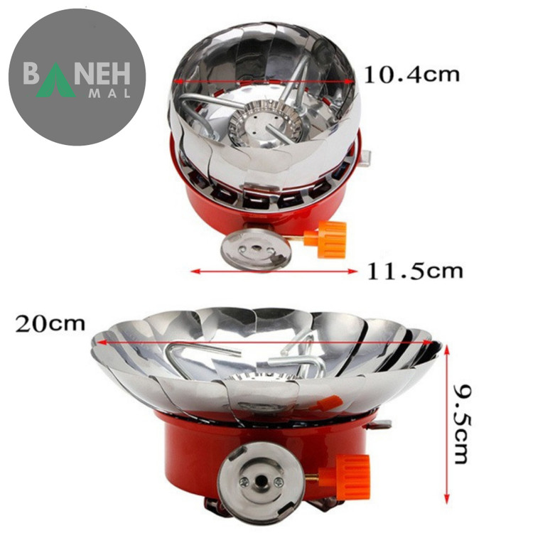 بادگیر دور شعله تاشو: یکی از ویژگیهای برجسته این سایبان، داشتن بادگیر دور شعله تاشو است. این بادگیر به طور مؤثری از کاهش شدت باد و پخش گرما جلوگیری کرده و همچنین به پایداری شعله در شرایط مختلف جوی کمک میکند. این ویژگی میتواند در روزهای بادخیز بسیار مفید باشد و گرما را بهطور یکنواختتری در محیط پخش کند.