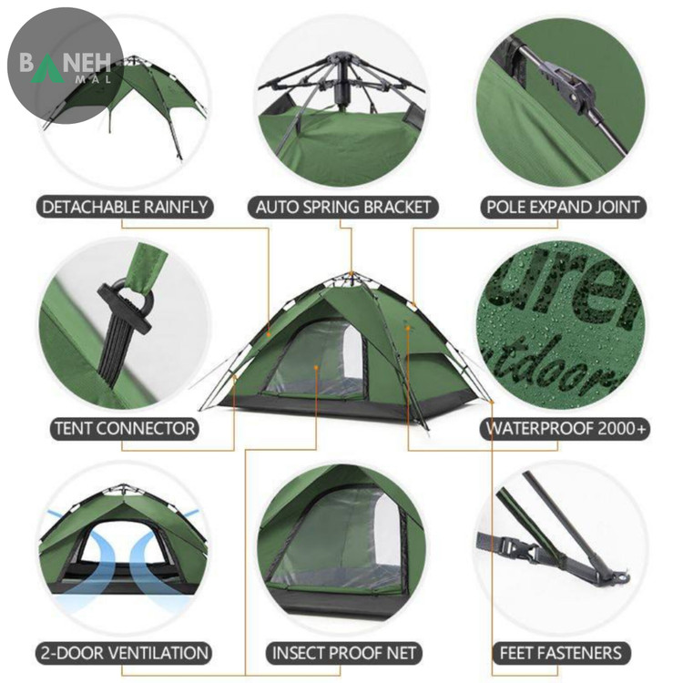 یکی از ویژگیهای برجسته این چادر، طراحی اتوماتیک آن است. نصب چادرهای اتوماتیک نیازی به پیچیدگیهای زیاد ندارند و به راحتی در چند دقیقه نصب میشوند. این ویژگی بهویژه در سفرهای طبیعتگردی که زمان و شرایط آب و هوایی متغیر هستند، بسیار مفید است. شما تنها کافی است که چادر را از بستهبندی خارج کرده و در چند ثانیه چادر بهطور خودکار باز و آماده استفاده میشود. این فرآیند بسیار سریع و راحت است و نیازی به تنظیمات پیچیده یا کمک اضافی ندارد.