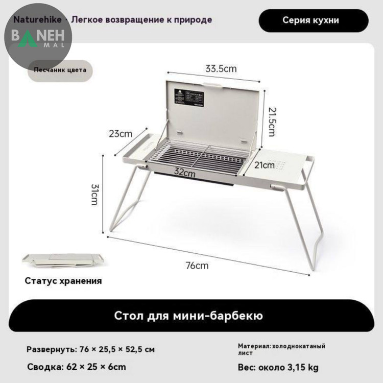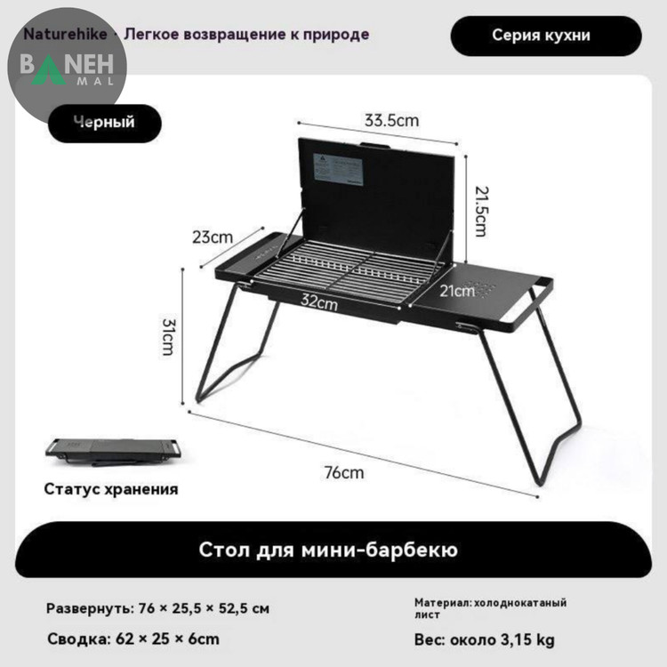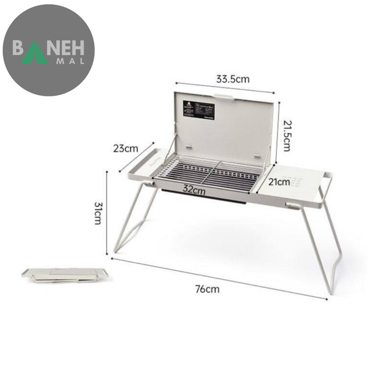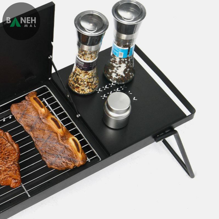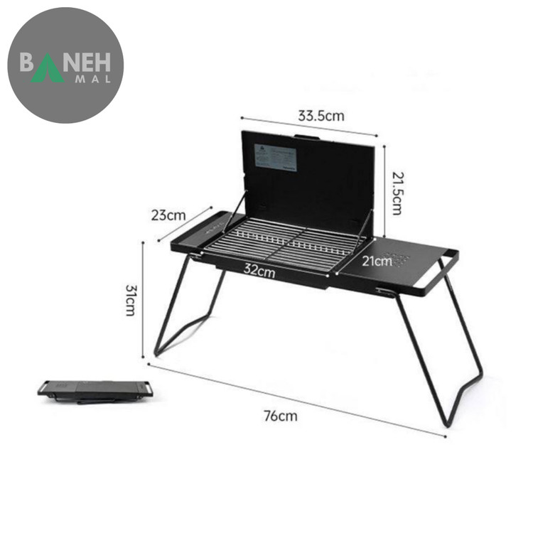 - ابعاد باز شده: هنگامی که اجاق بهطور کامل باز میشود، ابعاد آن به ۷۶ × ۲۵.۵ × ۵۲.۵ سانتیمتر میرسد که فضای مناسبی برای قرار دادن زغال و پختوپز فراهم میکند.