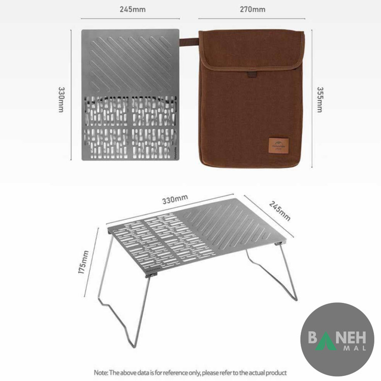 گریل NH20SK015 با طراحی تاشو و کمحجم، بهراحتی در کولهپشتی یا کیف سفری شما جای میگیرد. در حالت باز، این گریل ابعادی برابر با ۲۴۵×۳۳۰ میلیمتر و ارتفاع ۱۷۵ میلیمتر دارد که فضای مناسب و کافی برای پخت انواع غذاها روی آتش مستقیم را فراهم میکند. در حالت بسته نیز ابعاد آن به همان ۲۴۵×۳۳۰ میلیمتر میرسد، اما با طراحی فشرده، کاملاً مسطح و بدون برآمدگی، جابهجاییاش فوقالعاده راحت است.