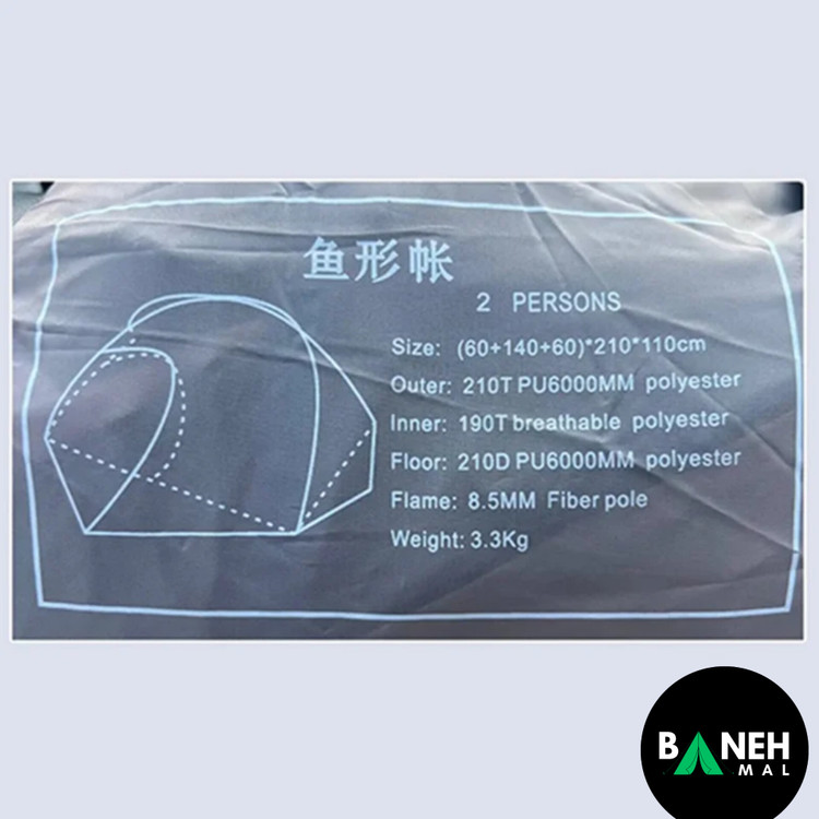 پوشش بیرونی چادر از ۲۱۰T PU6000MM ساخته شده است که مقاوم در برابر بارش شدید باران و رطوبت است. این پوشش دارای قابلیت ضد آب بوده و به راحتی آب را دفع میکند. همچنین، کف چادر نیز از 210D PU6000MM ساخته شده است که آن را در برابر نفوذ رطوبت و خاک مقاوم میسازد.