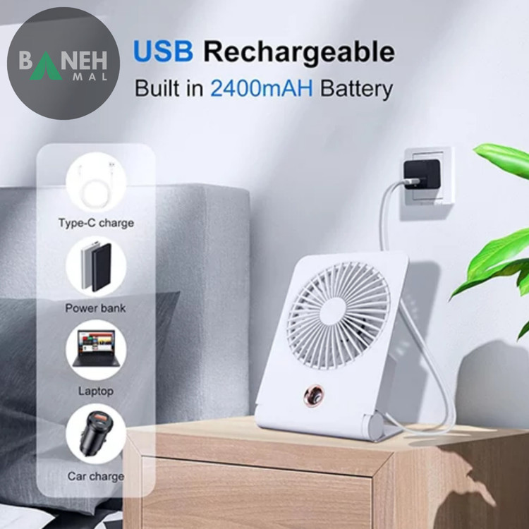 پنکه شارژی رومیزی و دیواری اسپری کننده آب مدل FC-6605