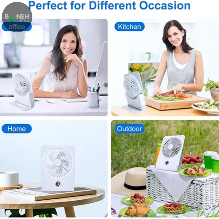 این پنکه قابل استفاده بهصورت رومیزی یا دیواری است، بنابراین در محیطهای مختلف مانند اتاق خواب، آشپزخانه، میز کار، ماشین، کمپینگ، مسافرت یا حتی در سالنهای زیبایی و فروشگاهها قابل استفاده است. بهدلیل طراحی بیسیم و شارژی، محدود به موقعیت پریز برق نیستید و میتوانید از آن در هر جایی بهره ببرید.