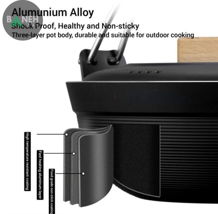 جنس: فولاد ضد زنگ ۳۰۴ و ۲۰۱ ، آلیاژ آلومینیوم ، چوب راش