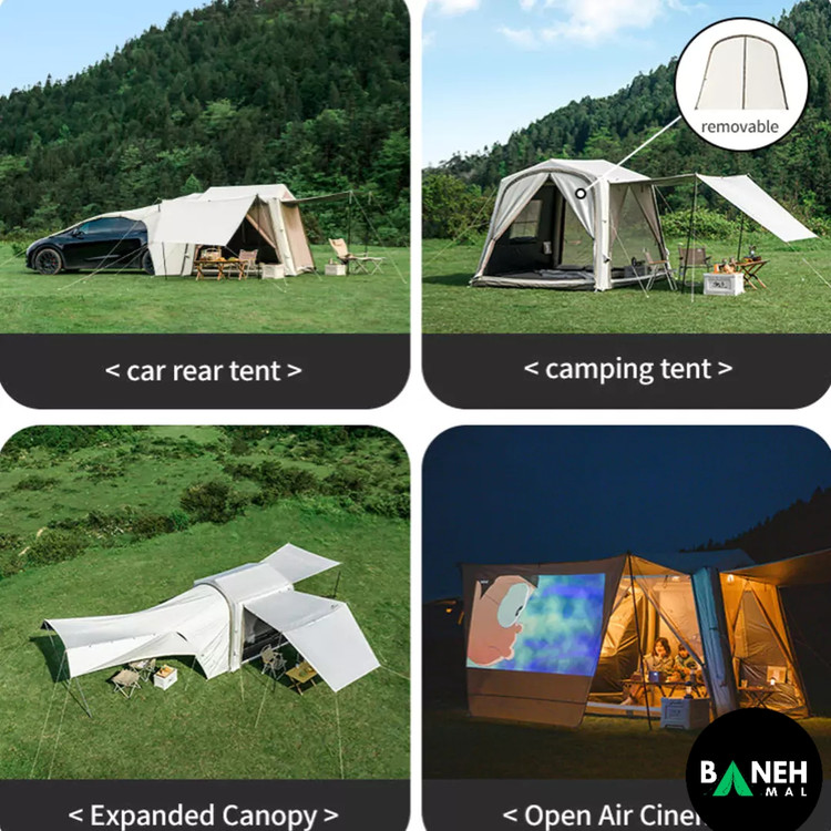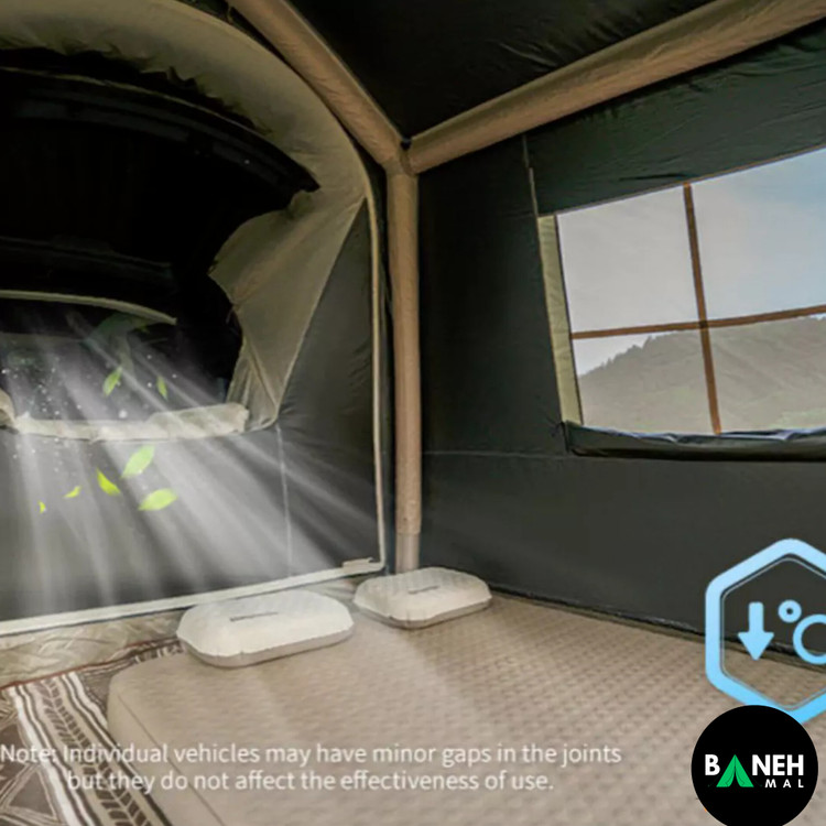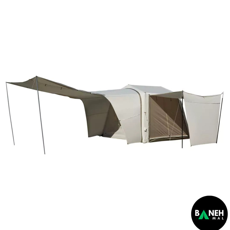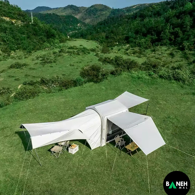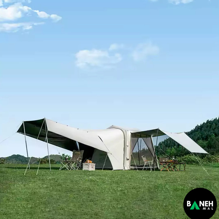 این چادر با داشتن ستونهای بادی TPU و طراحی هوشمندانه، در کوتاهترین زمان نصب میشود و فضای داخلی راحتی برای چهار نفر فراهم میکند. علاوه بر این، جنس پارچه با روکش تیتانیوم و وینیل باعث شده در برابر باران، باد و نور خورشید مقاومت فوقالعادهای داشته باشه.