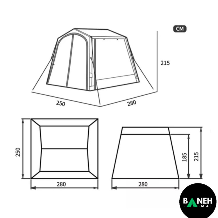 - ابعاد باز: 280×250×215 سانتیمتر