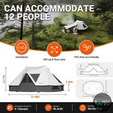 این چادر گلمپینگ به دلیل ابعاد بسیار بزرگ ۴۱۹.۹×۲۷۰×۶۷۰ سانتیمتر، فضای وسیعی را برای اقامت گروهی و خانوادگی فراهم میکند. با ظرفیت تا ۱۲ نفر، امکان استفاده همزمان برای تعداد زیادی از افراد مهیا است.