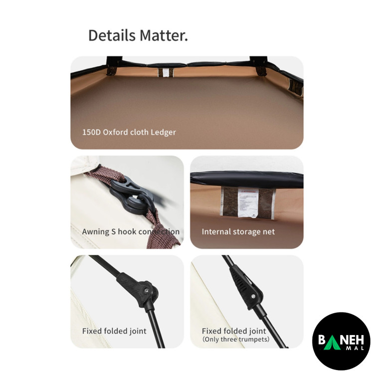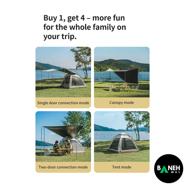 نیاز دارند. فضای داخلی کافی، سایبان بیرونی، مقاومت در برابر شرایط جوی، و طراحی حرفهای، این چادر را برای انواع موقعیتها و شرایط آبوهوایی مناسب کرده است.
