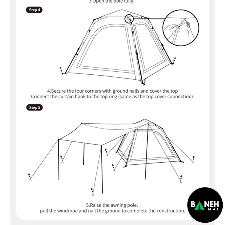 با وجود اندازه بزرگ، این چادر بهگونهای طراحی شده که در مدت کوتاهی قابل نصب است. میلههای پیشساخته و اتصالات سریع، راهاندازی آن را حتی برای افراد کمتجربه نیز ساده میکند.