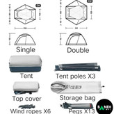 | وزن | ۱.۵۴ کیلوگرم (تکنفره) / ۱.۸۷ کیلوگرم (دونفره) |
