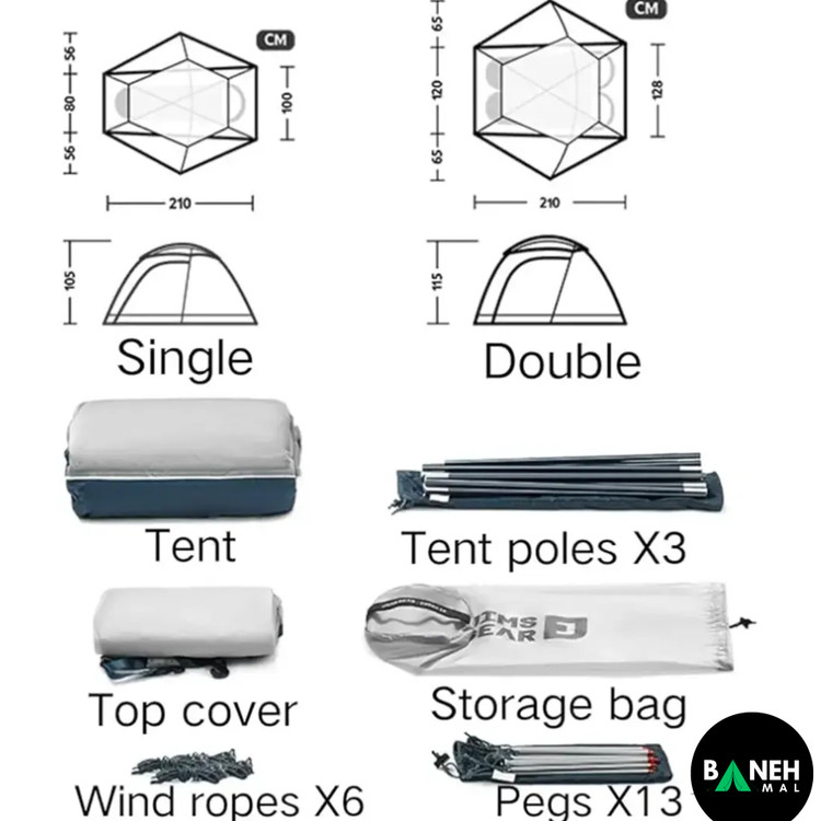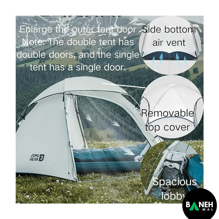 - 🦟 لایه داخلی: نایلون مش 15D ضدحشره برای آرامش در کمپینگ