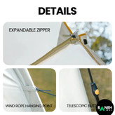 با اضافه کردن سایهبان، ایوان تا ابعاد 290 × 280 سانتیمتر بزرگتر شده و محیطی عالی برای نشستن و استراحت بیرون از چادر فراهم میکند.
