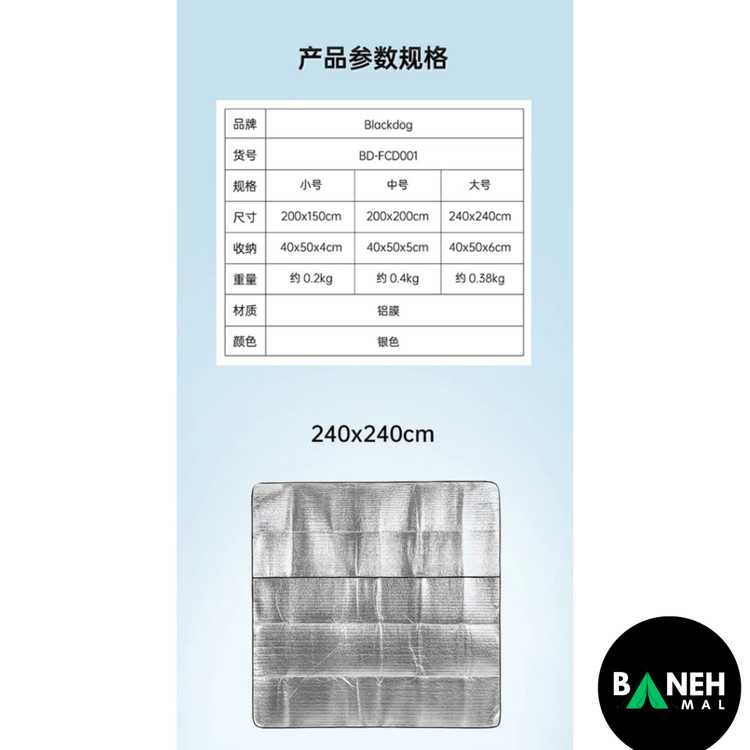 جدول مشخصات فنی زیرانداز چادر بلک داگ BD-FCD001