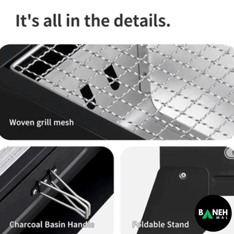 | اقلام همراه | شبکه فلزی، محفظه ذغال، پایههای تاشو |