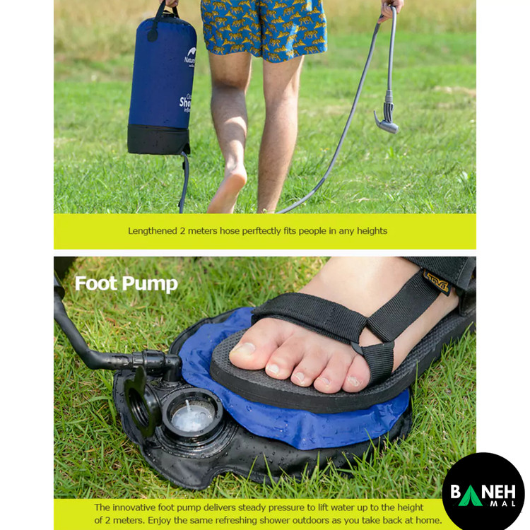 دوش سفری نیچرهایک PW1027 مدل NH17L101-D یک دوش قابل حمل و کاربردی برای کمپینگ، سفر و فعالیتهای فضای باز است که تجربهای راحت و حرفهای در شستشو و بهداشت شخصی فراهم میکند. این محصول با طراحی کاربرپسند و سیستم پمپ پدالی، امکان استفاده آسان از آب را در هر محیطی فراهم میآورد.