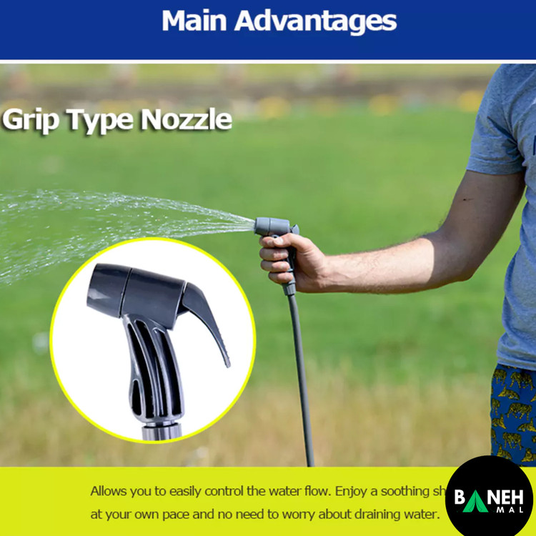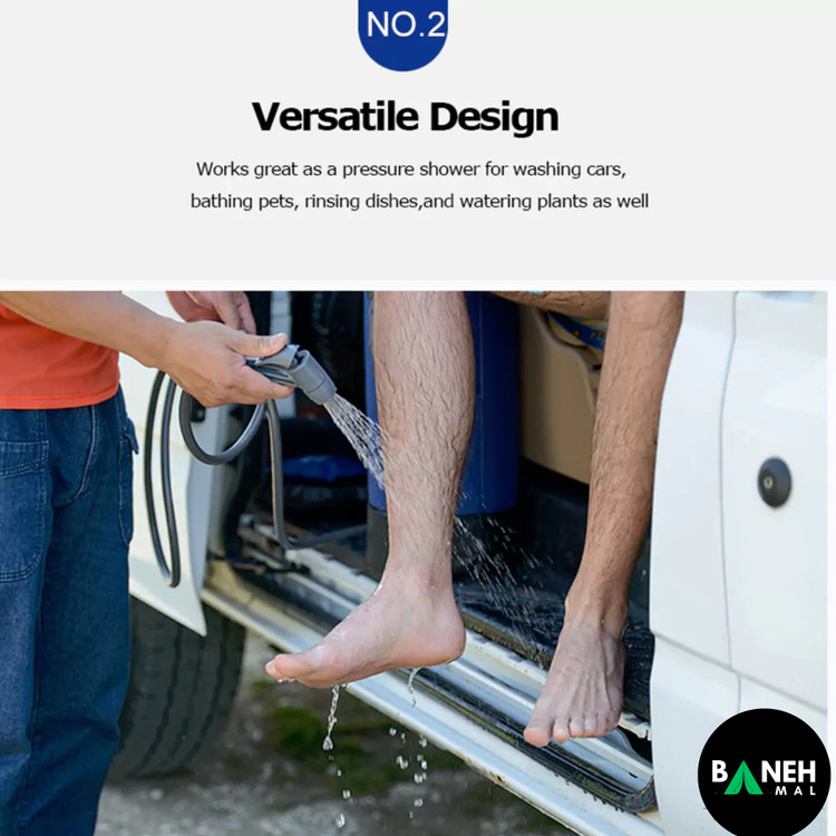 این دوش سفری ترکیبی از کارایی، راحتی و حمل آسان را ارائه میدهد و تجربهای حرفهای در حفظ بهداشت و رفاه در محیطهای باز فراهم میکند.