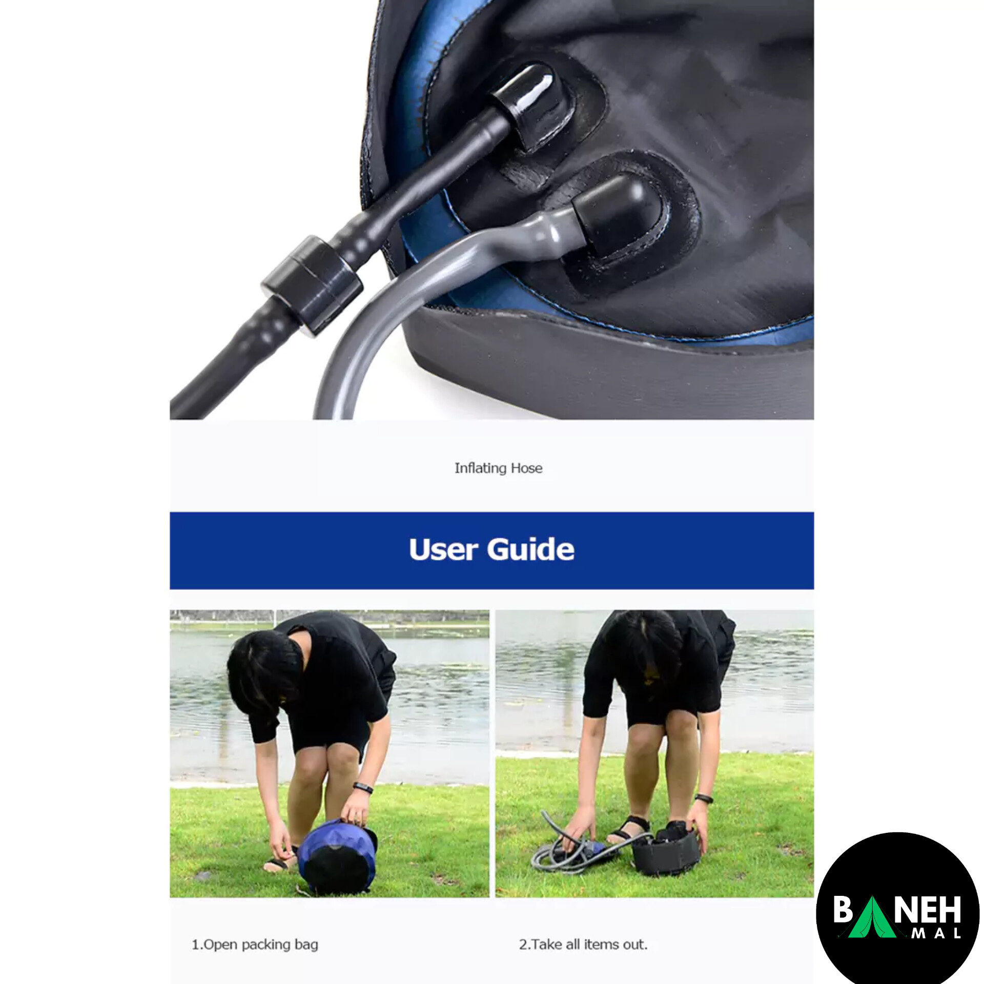 اقلام همراه کامل: مخزن دوش، پمپ هوا، نازل و کیسه فشردهسازی