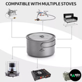 استفاده از تیتانیوم خالص باعث میشود قابلمه سبک، مقاوم و بادوام باشد و بتواند سالها در سفر و کمپینگ همراه شما باشد.